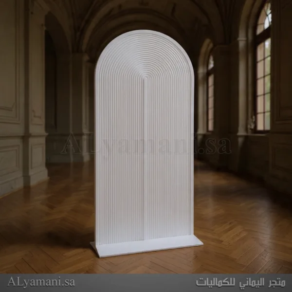 أضف لمسة من الأناقة العصرية إلى مدخلك مع خلفية استقبال مقلمة مقوس ابيض مطفي. تتميز هذه الخلفية بتصميم مقلم كامل ومقوس من الأعلى. مما كذلك, يضفي انسيابية وجاذبية فريدة على المساحة. بفضل قاعدة التثبيت القوية، تضمن هذه الخلفية ثباتًا واستقرارًا في مكانها، مما يجعلها خيارًا مثاليًا لإضفاء لمسة من الرقي والتميز على أي مدخل.