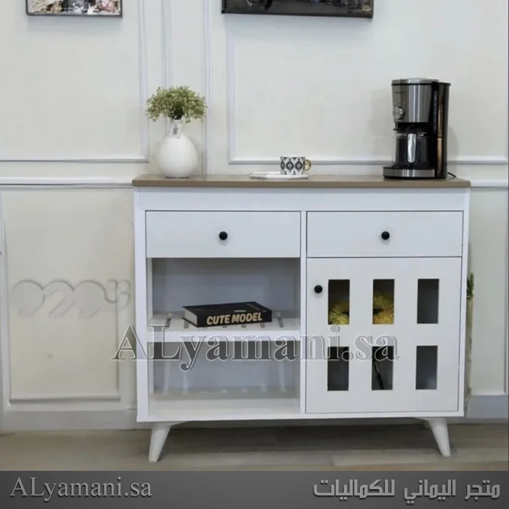 - تحتوي الطاولة على درفة واسعة تتيح لك تخزين كافة أدوات تحضير القهوة الكبيرة مثل ماكينة القهوة، المطاحن، والعبوات. بفضل هذه الدرفة، يمكنك الحفاظ على أدواتك بعيدة عن الغبار وفي مكان واحد منظم.