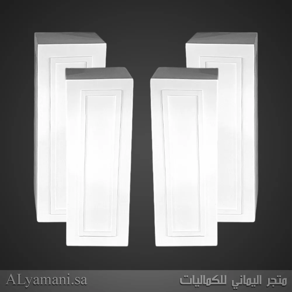 يأتي التصميم باللون الأبيض المطفي مع تشطيب سادة، وهو ما يمنح الطقم مظهرًا راقيًا يتناسب مع كافة ثيمات الديكور الحديثة والكلاسيكية على حد سواء. بالإضافة إلى ذلك، فإن البراويز تعزز من إمكانية استخدام هذه القطع كخلفيات صغيرة أو حوامل ديكور.