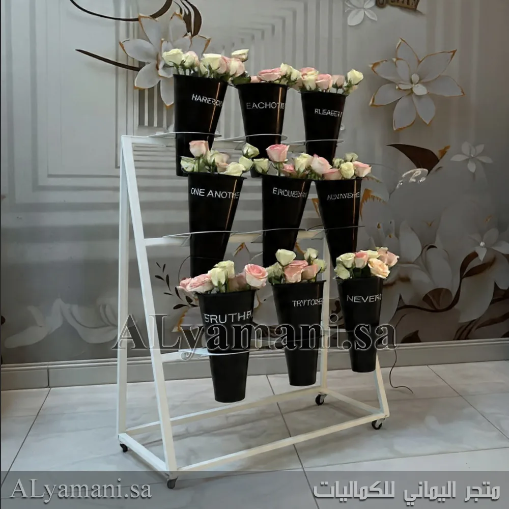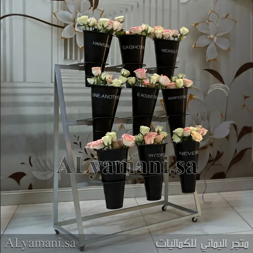 تم تصميم الستاند ليحمل 9 مراكن ورد بلاستيكية بسهولة. كما يوفر ترتيباً منسقاً للأزهار ويزيد من جاذبية المكان.