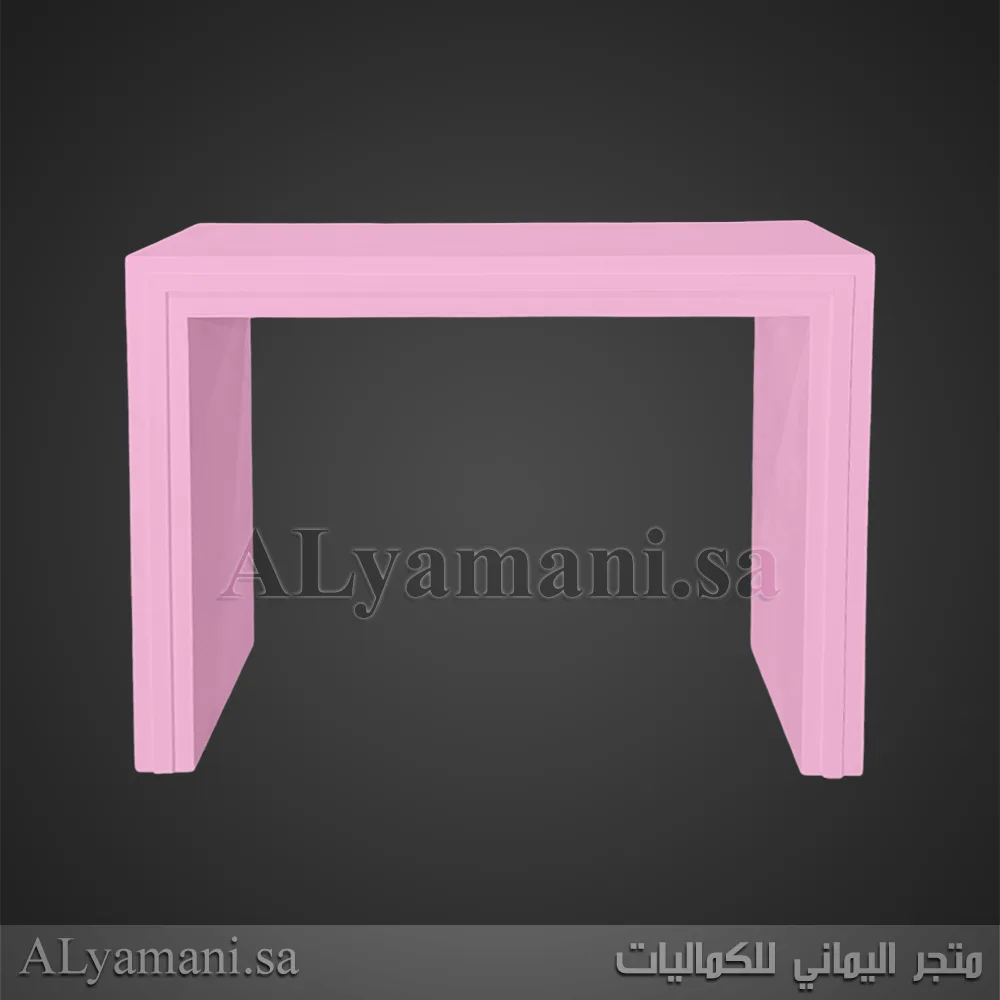 طاولات استقبال مربعة لون وردي – تأتي الطاولات بتصميم مربع مزود بإطار بارز يمنحها جاذبية خاصة ويضفي عليها طابعاً عصرياً وجريئاً. يناسب التصميم المربع مختلف الأنماط الداخلية، ما يجعلها مثالية لإضفاء لمسة أنيقة في مدخل المنزل أو منطقة الاستقبال.