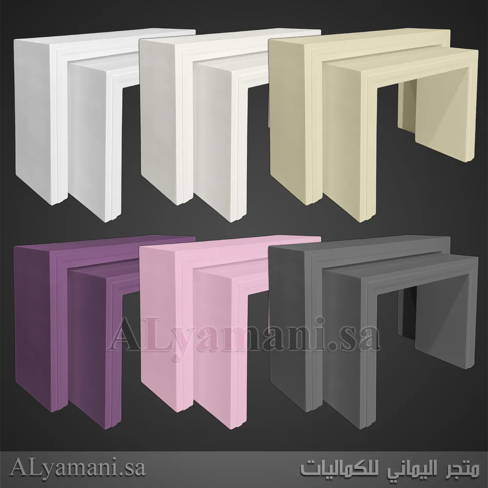 تقدم طاولات استقبال مربعة متعددة الألوان بتصميم عصري وبرواز مميز، مثالية لإضفاء لمسة فريدة في مدخل منزلك.