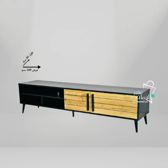 طاولة تلفزيون بلازما أسود وخشبي تجمع بين الأناقة والعملية بشكل مثالي. بفضل تصميمها العصري والألوان المتناسقة، توفر الطاولة مساحة تخزين فعالة وتنظيمًا للأجهزة الإلكترونية. تتوفر بمقاسين مختلفين لتناسب احتياجاتك والمساحة المتاحة، مما يجعلها إضافة رائعة لأي منزل.