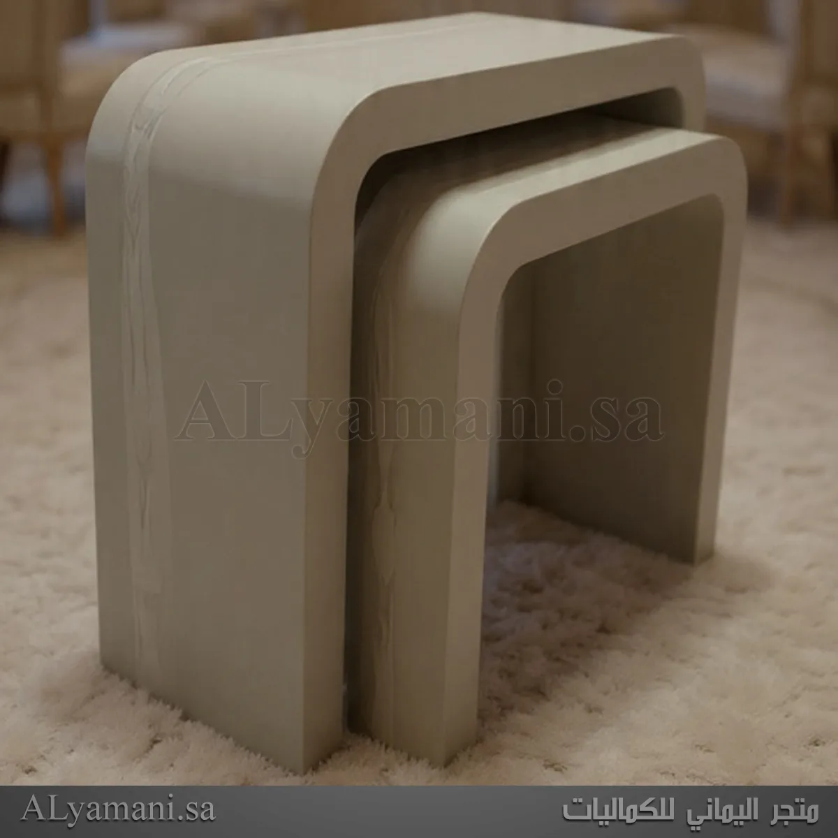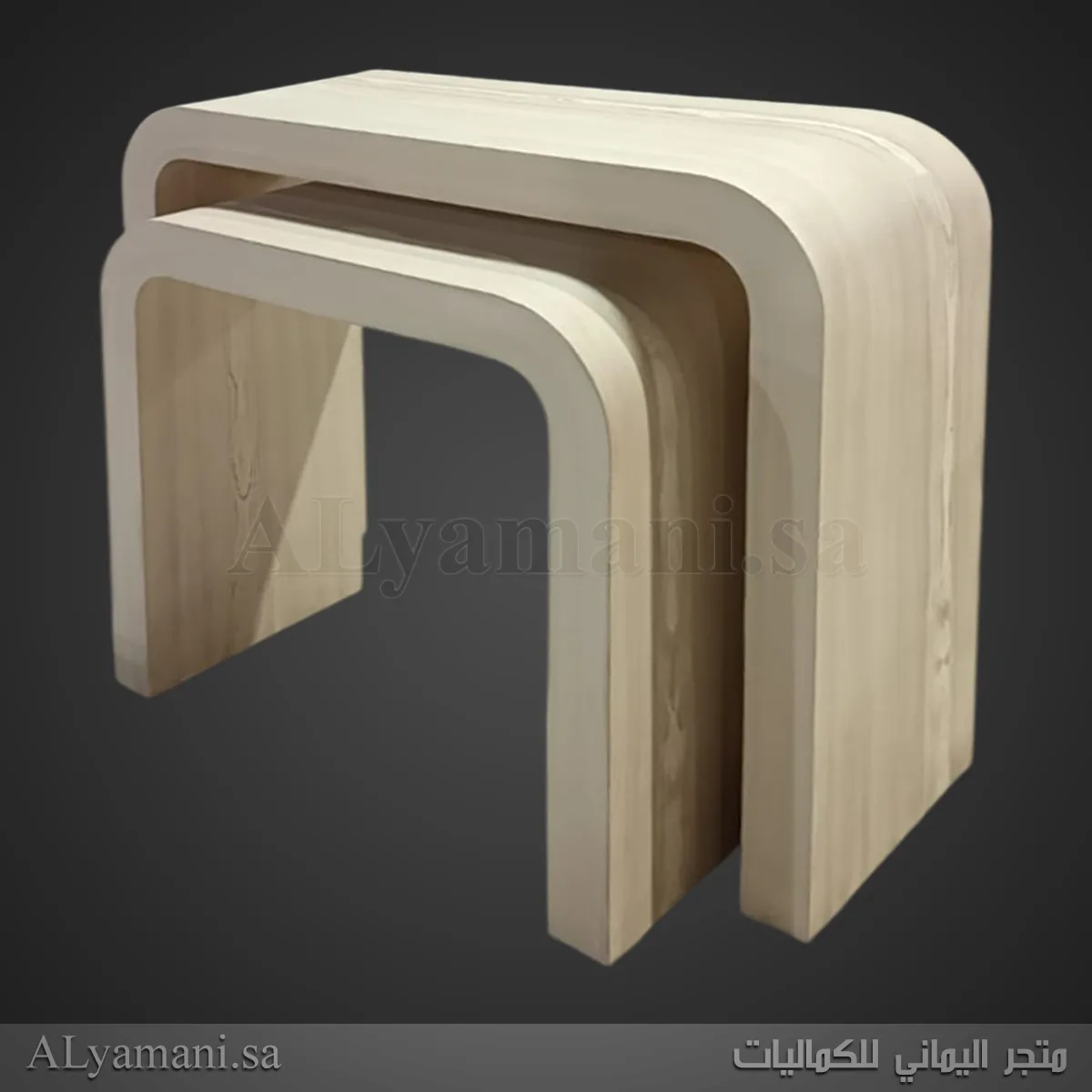 الطاولة الكبيرة بعرض 120 سم وارتفاع 100 سم، والصغيرة بعرض 95 سم وارتفاع 88 سم، مناسبة لمختلف المساحات.