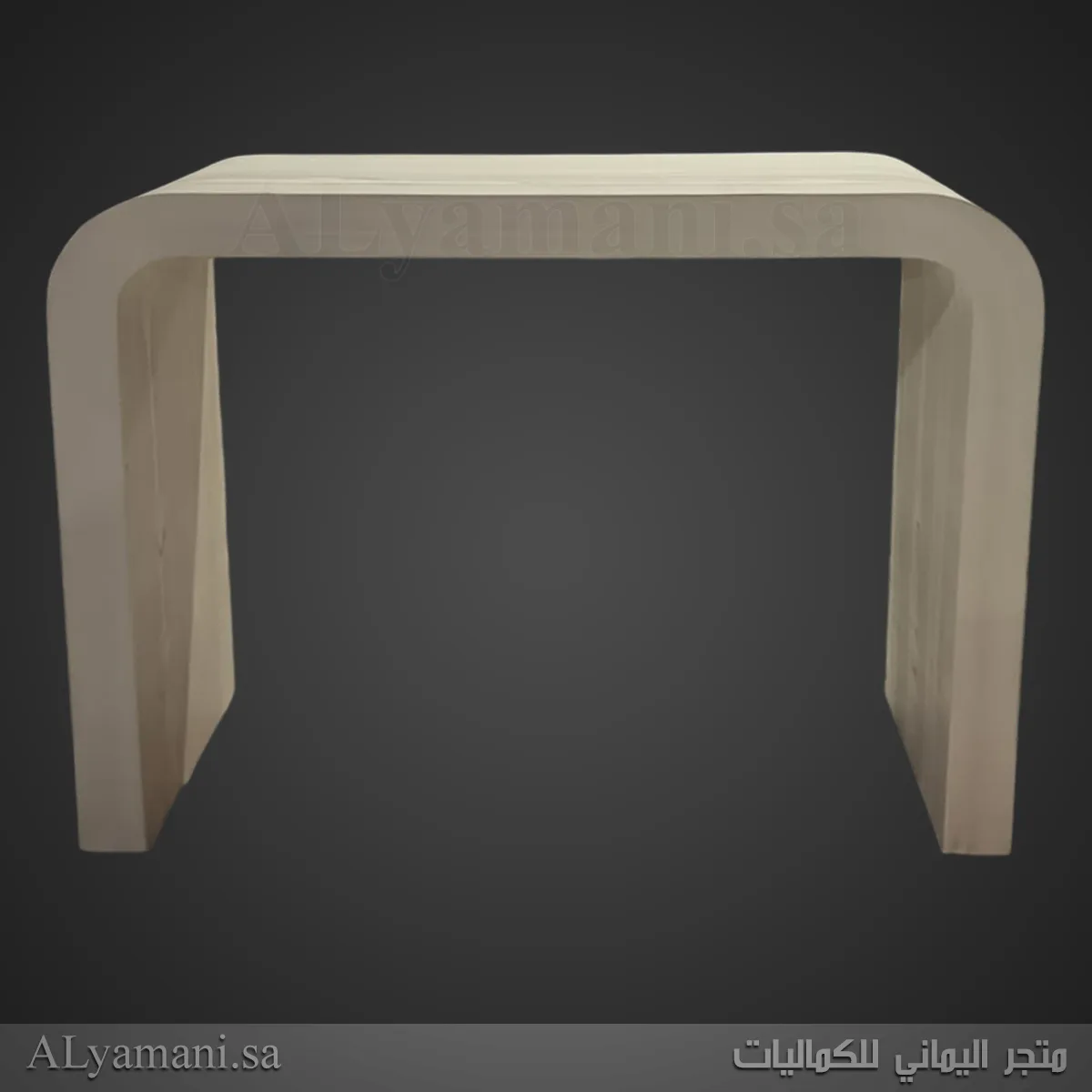 طاولة مدخل و استقبال باللون البيج الخشبي الفاتح معتقة يدوياً بتصميم مقوس