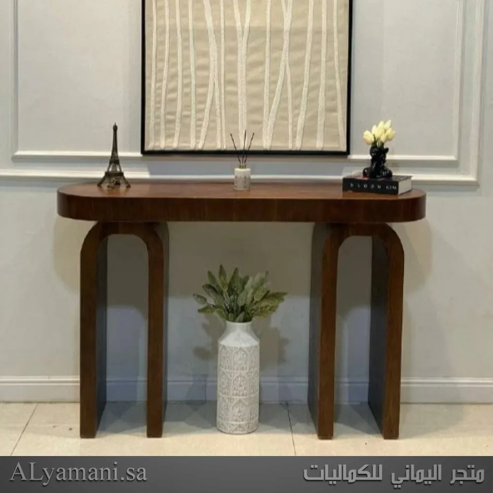 تفاصيل طاولة المدخل المقوسة بلون بني معتق