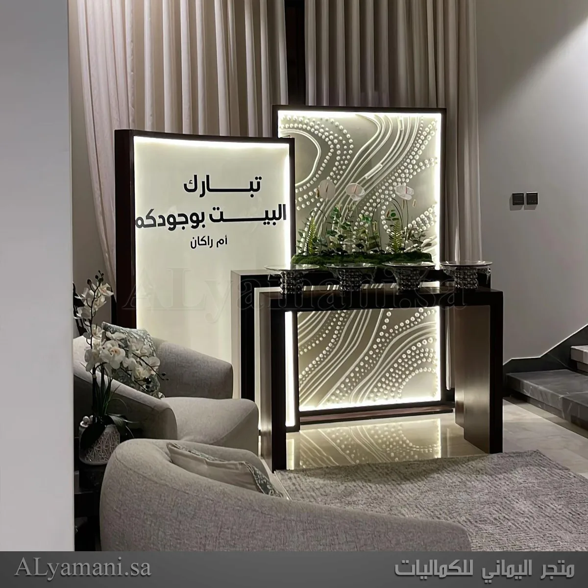 كما تساعد الطاولة الصغيرة على عرض الشموع او الهدايا بشكل متناسق مع الخلفيات المضيئة.