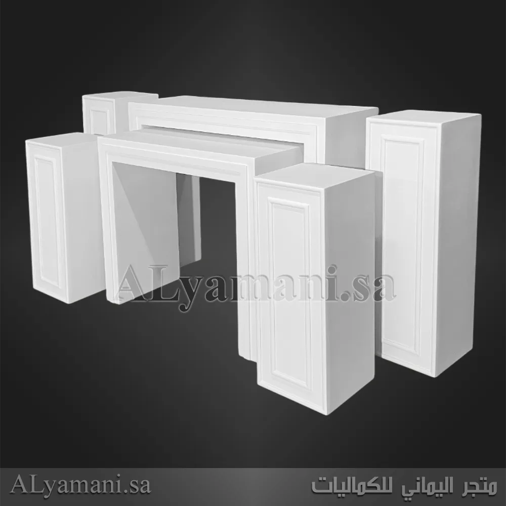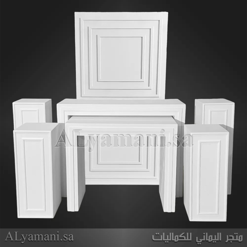 يتكون الطقم من خلفية وطاولتين واربعة ستاندات.