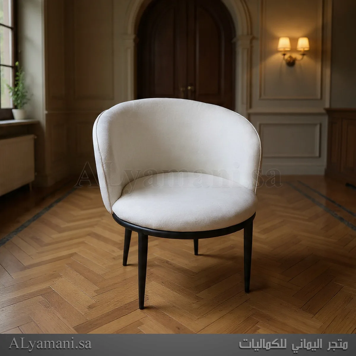 يضفي اللون الأبيض المخملي لمسة من الصفاء والرقي على المكان، كما أنه يتناسق بسهولة مع مختلف ألوان الديكور الأخرى. القماش المخملي الفاخر المستخدم في الكراسي يوفر ملمسًا ناعمًا ومظهرًا فخمًا في آنٍ واحد، الأمر الذي يعزز من جمال الطقم ويمنحه طابعًا فريدًا.