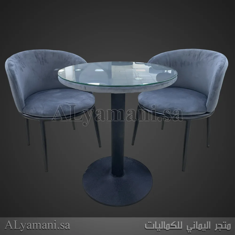 طقم جلسة كافيهات كرسيين وطاولة رمادي مخملي أنيق