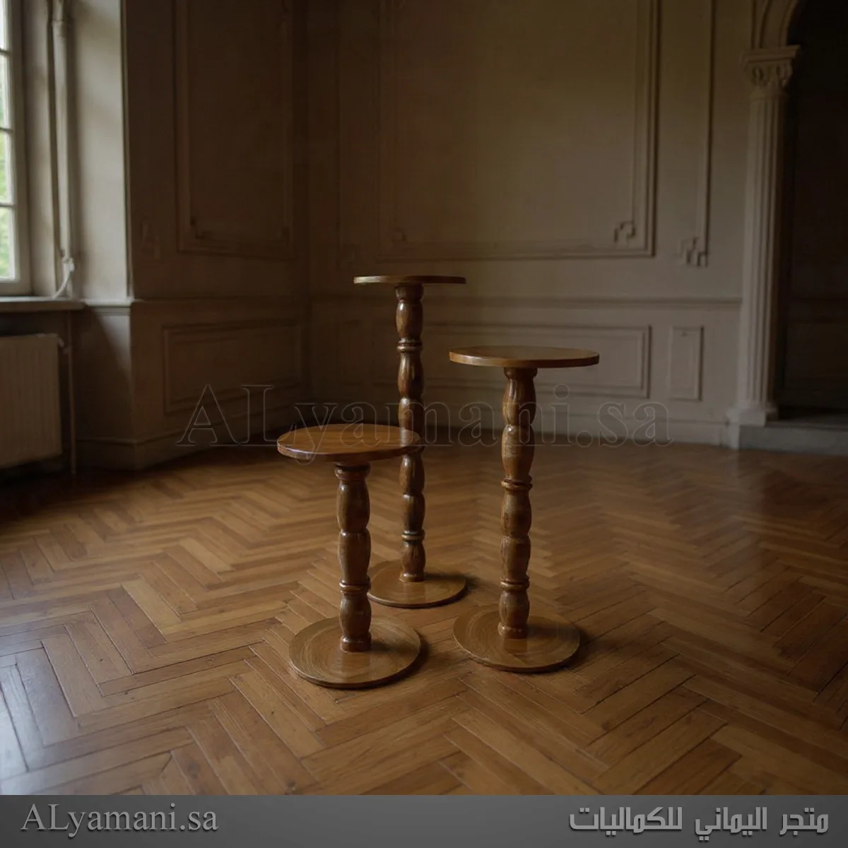 طقم طاولات جانبية ستاند استقبال بني معتق يدوي مودرن اسطواني