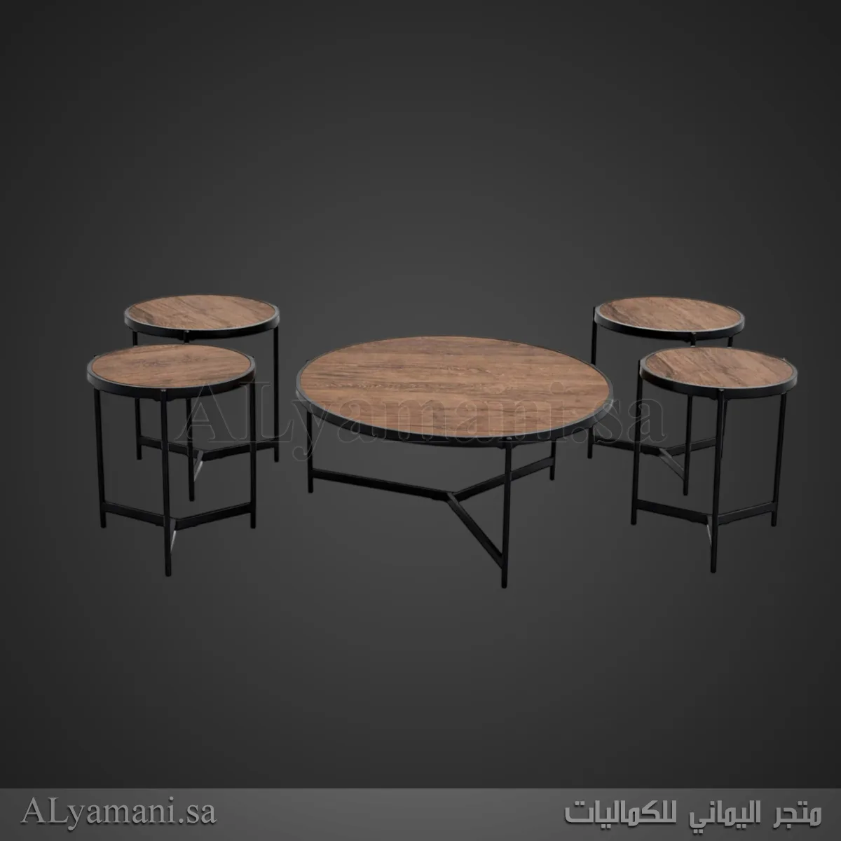 طقم طاولات ضيافة وتقديم قهوة دائرية بني خشبي يمنح مجلسك لمسة عصرية دافئة وتنظيما مثاليا للضيافة اليومية.