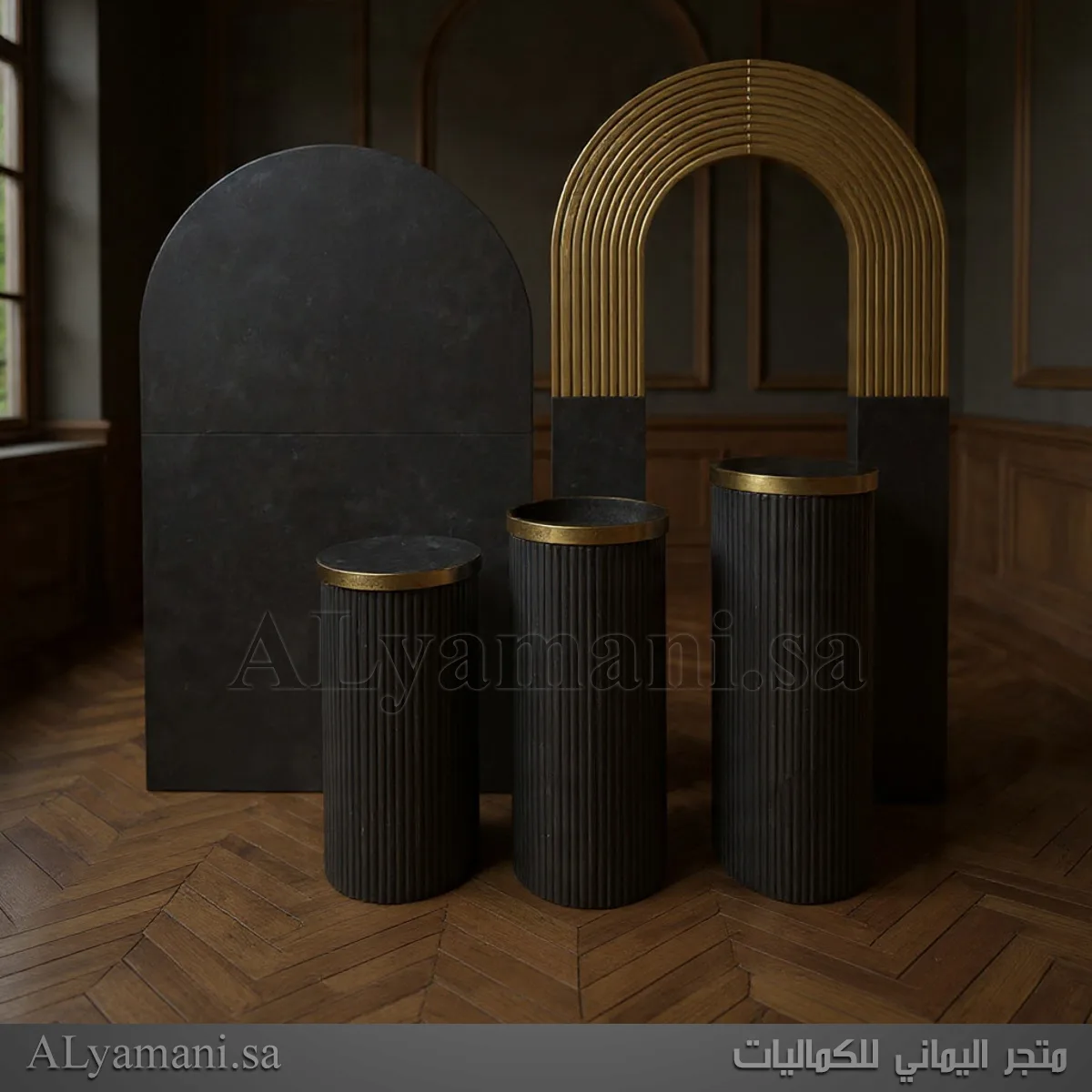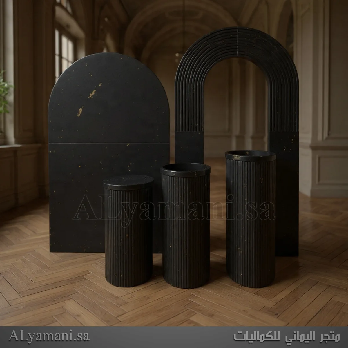 • عدد القطع: 5 قطع (2 خليفات + 3 ستاندات جانبية)