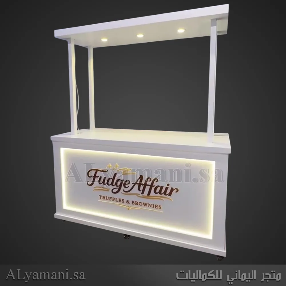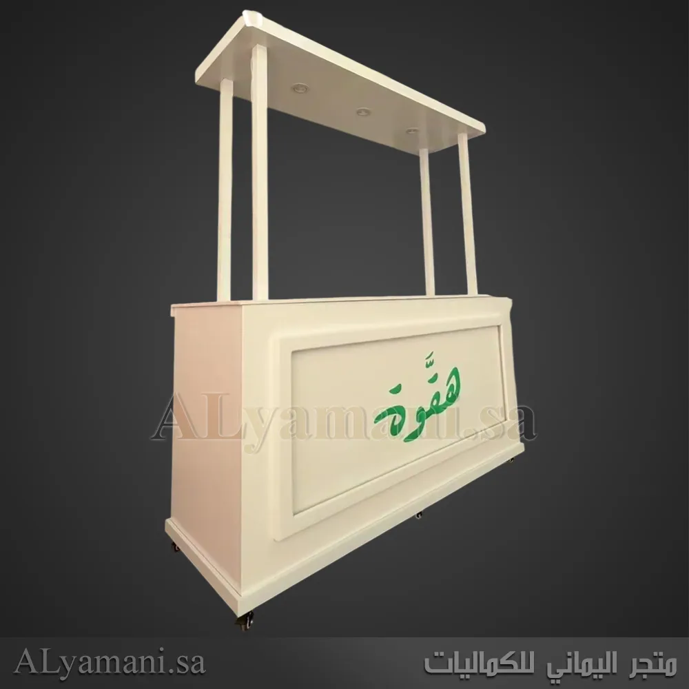 عربة كورنر خشب للمشاريع وتقديم المشروبات بتصميم احترافي