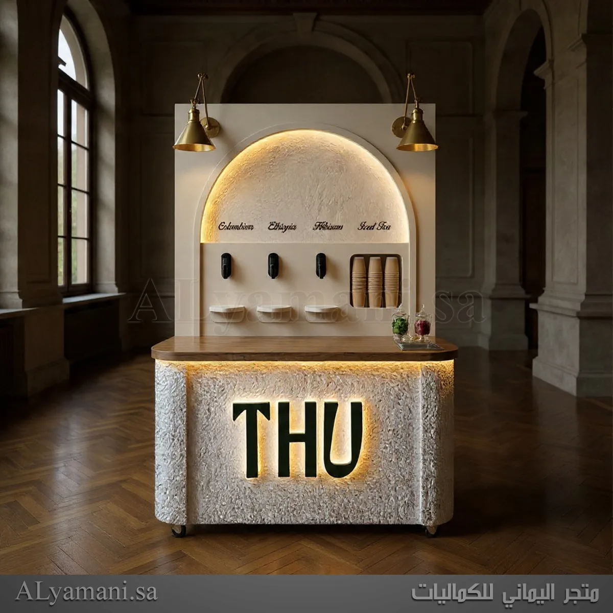 يعد كورنر كوفي كيترينق بوث قهوة متنقل تصميم فاخر مع اضاءة خيارا مثاليا لعشاق التميز في تقديم القهوة والمشروبات، حيث يجمع بين الاناقة والعملية. كما ان كورنر كيترينق بوث كوفي مشروبات وقهوة تصميم فاخر يوفر تجربة عرض احترافية، لذلك يستخدم في المناسبات والفعاليات، وبالتالي يمنح المكان طابعا راقيا ويعزز من حضور العلامة التجارية بشكل جذاب.